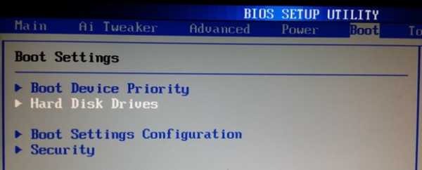 Когда BIOS будет запущен, можно будет приступать к настройкам. Используя стрелки на клавиатуре перейдите на вкладку Boot и нажмите Enter. Там нам нужно будет выбрать второй пункт Hard Disk Drives. Открываем его нажатием клавиши Enter.