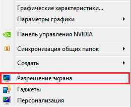 - В открывшемся контекстном меню выбрать опцию «Разрешение экрана».