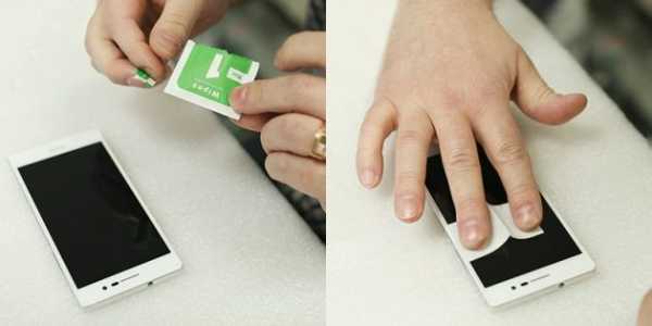 Совет! Чтобы процесс отклеивания был проще, наклейте экран телефона в ладонях.