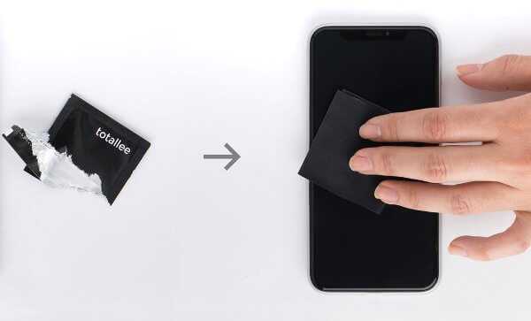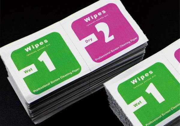 Это важный шаг, так как если вы не очистите экран вашего устройства, то в дальнейшем на экране будут находится частички пыли, грязи и следы от ваших отпечатков пальца. Для этого вы можете использовать спиртовую салфетку.