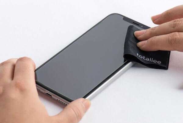 Для этого используйте жидкость для очистки дисплеев, антистатик или спирт. Тщательно удалите все пятнышки. Если вы только что сняли старую плёнку с телефона, сотрите остатки клея. После насухо протрите экран микрофиброй.