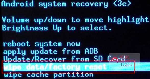 - ΠΠ°ΠΆΠΌΠΈΡΠ΅Β Π½Π°Β Β«wipe data/factory resetΒ».Β ΠΡΠ»ΠΈ ΡΠ΅Π½ΡΠΎΡ Π½Π΅ ΡΠ°Π±ΠΎΡΠ°Π΅Ρ, ΠΈΡΠΏΠΎΠ»ΡΠ·ΡΠΉΡΠ΅ ΠΊΠ»Π°Π²ΠΈΡΠΈ Π·Π²ΡΠΊΠ° Β«-Β» ΠΈ Β«+Β» Π΄Π»Ρ Π²ΡΠ±ΠΎΡΠ° Π½ΡΠΆΠ½ΠΎΠ³ΠΎ ΠΏΡΠ½ΠΊΡΠ°.