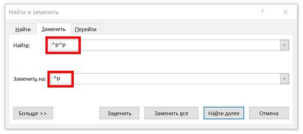 2 В поле Найти вставьте следующее — ^p^p, а в поле Заменить на — ^p. Затем нажмите Заменить все. Проделайте эту операцию несколько раз, пока не удаляться все пустые страницы.