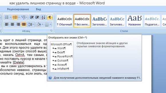 Как убрать лишнюю страницу в Ворде: способ № 1