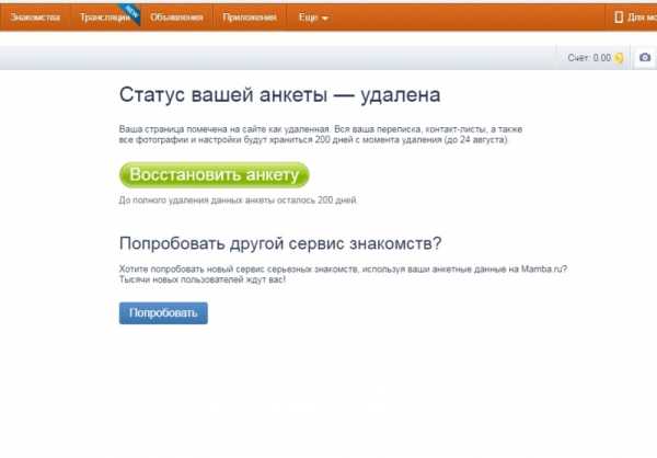 В сервисе знакомств каждый день регистрируется огромное количество людей, которые бы хотели найти свою половинку. Большой объем информации с фотографиями будет создавать дополнительную нагрузку на сервера сайта, поэтому алгоритм системы подразумевает автоматическое удаление профиля через 6 месяцев, при условии, что на него не заходили. Если вы не знаете, как удалить анкету с Мамбы, просто забудьте про нее и не посещайте свою страницу: она сама исчезнет. При желании восстановить ее придется разбираться со службой поддержки.