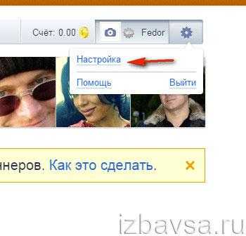 - В верхнем правом углу аккаунта есть иконка (графический элемент) в форме шестеренки. При нажатии появляется несколько пунктов, из них выбирается строка «Настройки».