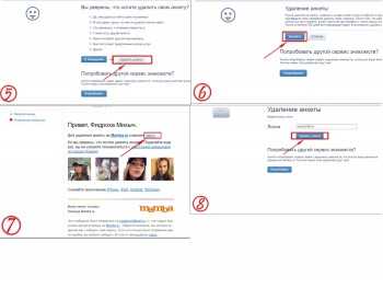 Скриншот 3-4. Выбор функций удаления анкеты.
