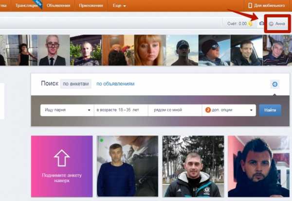 - После успешно выполненного входа пользователь попадает на главную страницу портала. Для того, чтобы удалиться с сайта mamba необходимо найти справа вверху свое имя и щелкнуть по нему один раз левой кнопкой мыши. Появится выпадающий список, в котором нужно выбрать настройки.