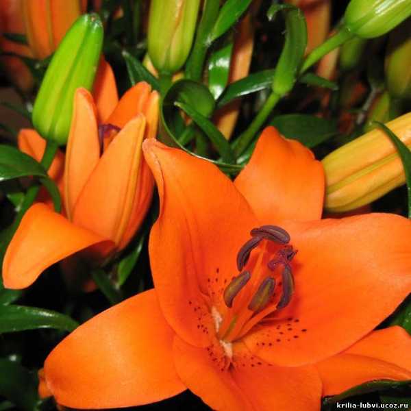 Лилии – нежные цветы, которые говорят об интересе, симпатии и восхищении. Только лилии имеют специфический запах, который не всем по душе.