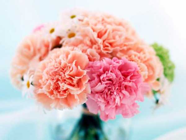 Белые, кремовые и нежно-розовые гвоздики составляют прекрасные композиции, покоряющие своей чувственностью и свежестью. Будьте внимательны, цветов красной и бордовой окраски в таких букетах быть не должно. Как вариант, можно купить кустовую гвоздику.