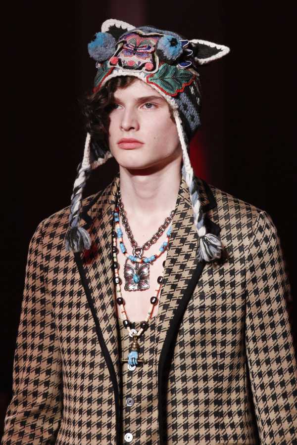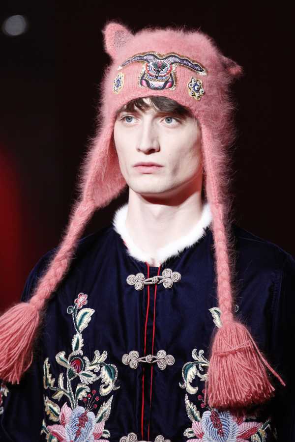 Однако, менее эстетичными эти шапки не стали. Особенно запомнилась коллекция Gucci с веселыми шапками-зверями, украшенными помпонами и прикрывающими уши. Яркие цвета и яркая отделка делают шапку еще привлекательнее.