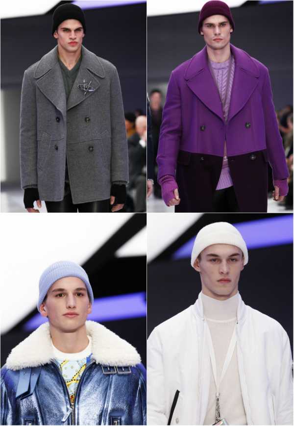 Мы уже отметили, что на пике моды объемные меховые головные уборы, но эту тенденцию продолжают и модные вязаные мужские шапки. Это часто модели с крупным орнаментом или из мохера и ангоры, либо привлекающие внимание колпаки, как у Moschino.