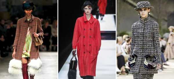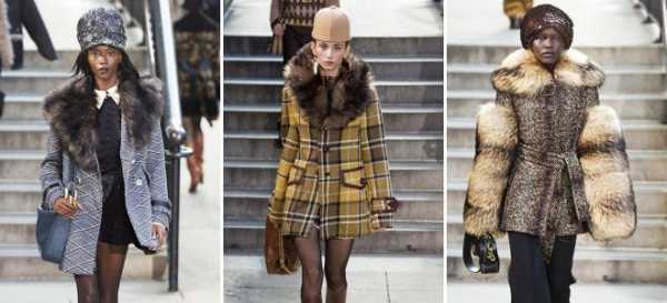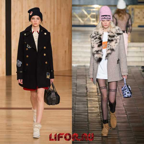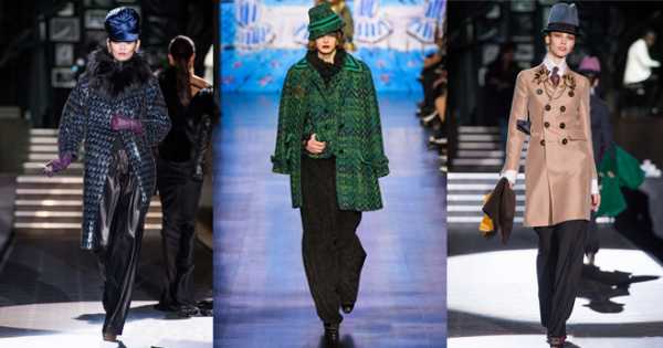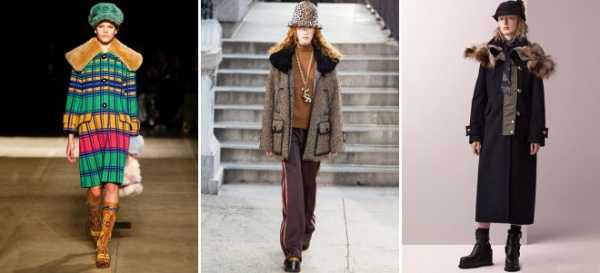 Из искусственного зеленого меха шапка под пальто с меховым воротником была показана на подиуме у итальянского бренда Miu Miu. Креативный директор Chitose Abe марки Sacai экспериментирует с многослойностью и необычным сочетанием фактур. Он предложил утепленную кепи с меховыми отворотами. Неуёмный выдумщик американский модельер Marc Jacobs показал публике многообразные шапки к драповому пальто. К примеру, шляпка в виде колокола в стиле 70-х годов с анималистическим принтом.