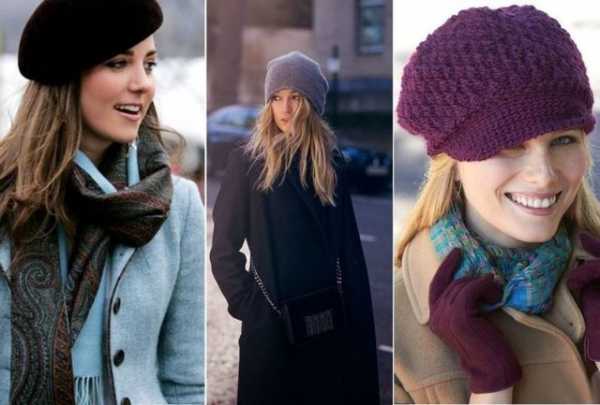 - Универсальными моделями шапочек считаются изделия с козырьками и вязаные береты. Такие идут практически всем барышням, независимо от их формы лица и смотрятся гармонично даже с черным пальто строгого кроя.