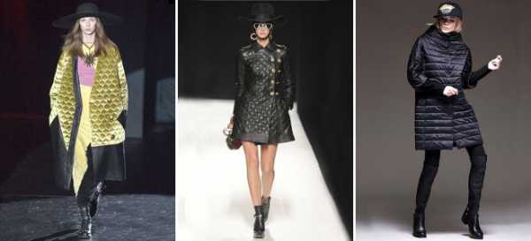 Стеганное зимнее пальто с шапкой от итальянского дизайнера Fausto Puglisi отличает любовь к китчу, асимметричный крой и смелые сочетания тканей и цветов. В виде головного убора представлена черная широкополая шляпа с закругленной тульей. Английский востребованный бренд Stella McCartney предлагает дополнить образ оригинальным платком с цветовыми переходами. Еще варианты головных аксессуаров к стеганой одежде от мировых кутюрье: