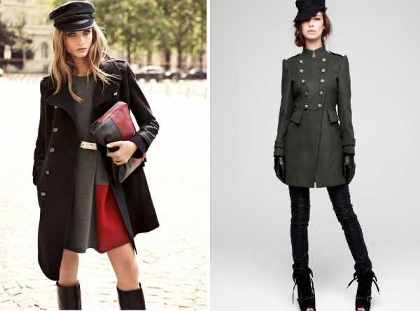 - Пальто в стиле милитари – такой крой пальто можно компоновать с различными кепками, фуражками, коскетами и шляпами мужского стиля.