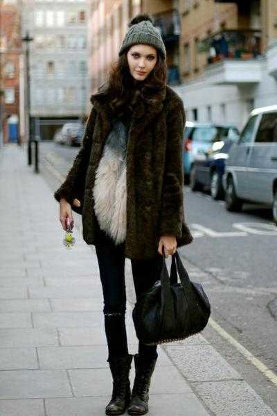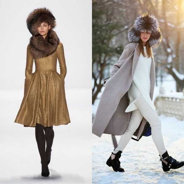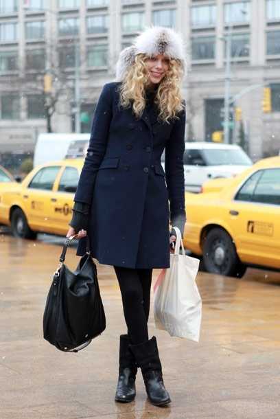 - Если ваше пальто имеет воротник с мехом, оно, как и дубленка либо шуба, требует меховой шапки. Важно чтобы такой аксессуар по тональности строго соответствовал цвету этого самого мехового воротника.