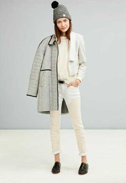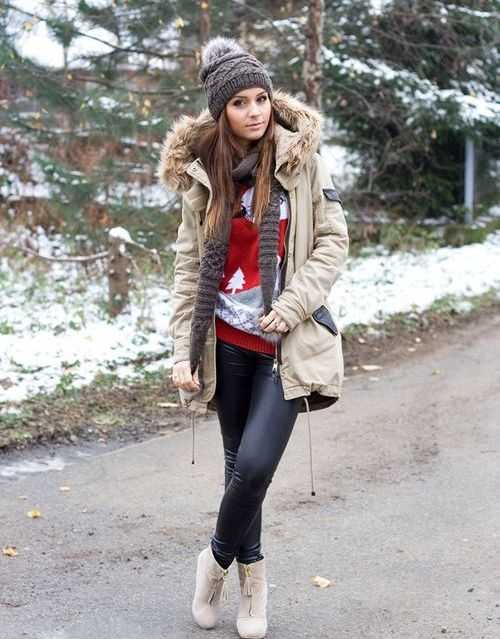 - С верхней одеждой стиля кэжуал хорошо сочетаются неординарные шапочки с ушками, а также помпонами, как на фото.