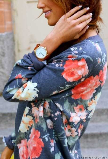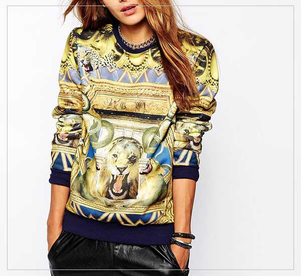 Свитшот отличается минимумом конструктивных деталей. Единственное, что у него может быть – это капюшон или внутренние карманы по бокам. Сейчас в моде свитшоты с яркими необычными принтами.