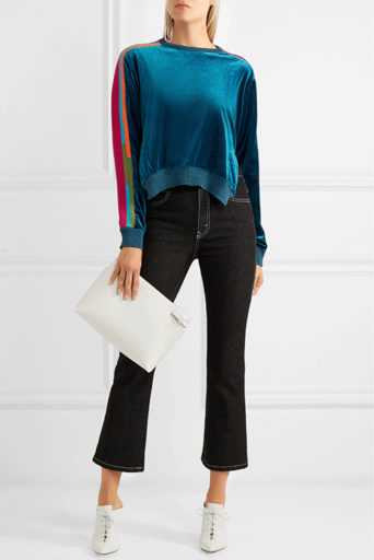 Чтобы укороченный свитер не утяжелял фигуру, он должен быть сшит из мягкого, легкого трикотажа или связан из тонких шерстяных, полушерстяных или акриловых ниток.