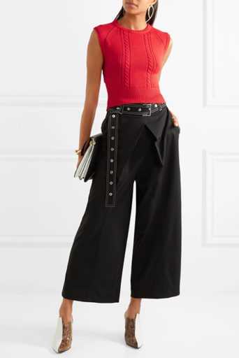 Красиво выглядит короткая модель с удлиненным воротом в виде хомута. Что касается цветового решения, короткий свитер должен быть однотонным.