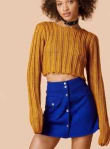 Джемпер – это вязанная одежда с круглым воротником. Фасоны могут варьироваться. Например, на фото ниже представлен женский укороченный джемпер.