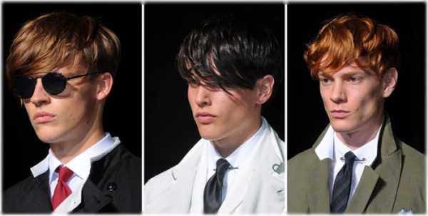 - Модные мужские стрижки с челкой также были очень популярны в этом сезоне. Прежде всего, это касается асимметричных стрижек с чёлкой, нарочито прикрывающей часть лица. Чёлка непременно должна быть длинной, прямой, гладкой и прикрывающей один глаз. Делая подобную стрижку, необходимо обязательно проконсультироваться с выполняющим её стилистом о способах укладки всей причёски и о формировании чёлки, в частности.
