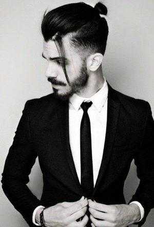 - Хвост или оригинальная коса. Сами по себе длинные волосы могут мешать работе, постоянно свисая на лоб. Поэтому энергичные парни убирают их в низкий, реже в высокий хвост, а некоторые даже плетут из него экзотические косы. Такая прическа не помешает спортивным занятиям, и подойдет под строгий мужской костюм. И если ваш волосы от природы вьются, то лучше всего его забрать в низкий хвост.