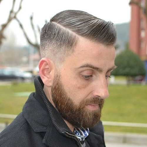 — английская стрижка, пользуется спросом среди мужчин всех возрастов. Волосы оставляют средней длины на макушке, а виски и затылок постепенно укорачивают. После этого волосы на макушке укладывают объемным и слегка растрепанным образом набок или назад, но чаще всего британку дополняют боковым выраженным пробором.