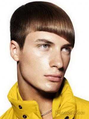 Вариантом модных асимметричных стрижек являются причёски из коротких волос, имеющие косую короткую чёлку. Такие стрижки можно считать идеальными для мужчин, обладающих худыми вытянутыми лицами овальной формы, поскольку таким образом можно достигнуть создания выразительного и драматичного образа.