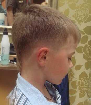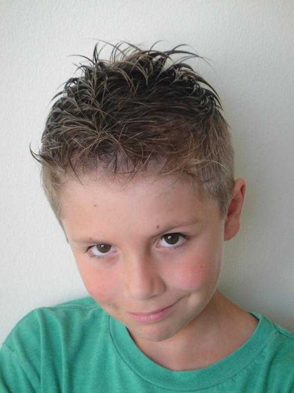 Вариант такой стрижки – ежик. Для укладки делают боковой пробор и зачесывают волосы набок. В итоге малыш превращается в настоящего денди. В таком виде ребенка можно без опасений получения замечаний за внешний вид отпускать в школу.