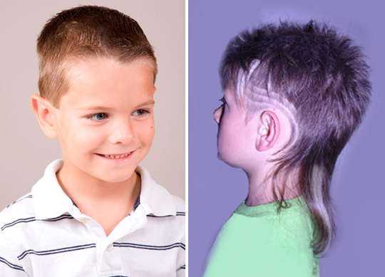 Обязательно найдите подходящее решение. Возможно, на этот раз стоит уступить: пусть юный модник поймёт, что длинные волосы требуют постоянного ухода, а трафаретный рисунок малозаметен на светлых прядях.