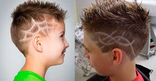 В моде фигурные рисунки в детских стрижках давно стали настоящим искусством. Деткам нравится такой вариант. А в комбинации с полубоксом и боксом получается стильный образ, даже крутой.