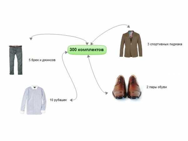 Постарайтесь, чтобы ваш гардероб хотя бы на 60 процентов был взаимозаменяем. Больший процент совместимости, конечно, еще лучше. Посмотрите на следующий математический пример.