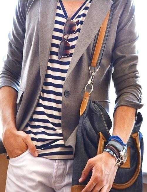 В мужском гардеробе должен быть пиджак (блейзер) в городском стиле. Такой пиджак можно одеть на вечеринку с джинсами, на свидание или на прогулку и даже в офис в пятницу. Для базового гардероба такой пиджак должен быть нейтрального цвета — черный, серый, синий, коричневый. Более подробно о том, как выбрать блейзер в стиле кэжуал, читайте здесь…
