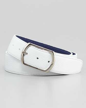 Ремень, базовый для выходного и повседневного мужского образа, изготавливается из черной или темно-коричневой матовой кожи и имеет не слишком объемную пряжку без лишнего декора. Купить мужской ремень.