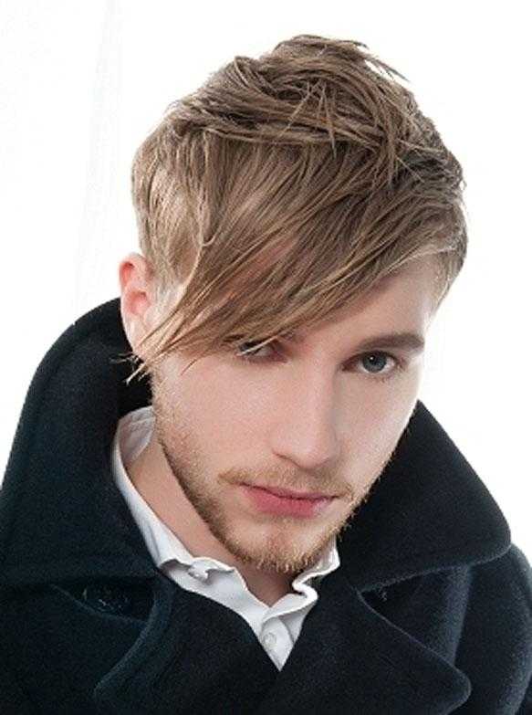Для молодых людей с круглой формой лица отличным вариантом считается косая удлиненная челка, спадающая на одну сторону.