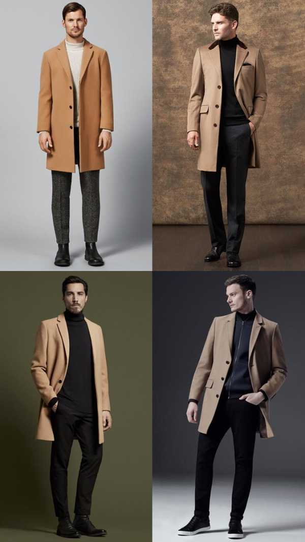 Стилисты предлагают оттенять яркую фактуру верхней одежды, используя в ансамбле водолазки нейтральных цветов. Сезон 2019 – 2018 вернул в моду элегантные мужественные одеяния, отличающиеся практичностью. К желтому двубортному пальто идеально подойдет водолазка черного, темно-зеленого, серого цвета.