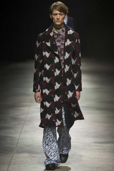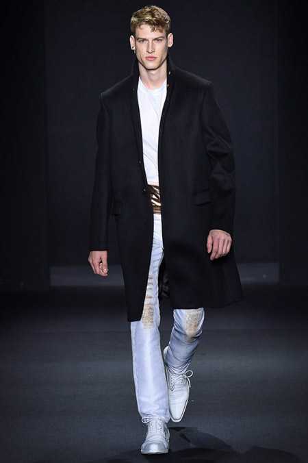 Но актуальнее всего смотрятся изделия из твида с двубортным рядом и воротничком «инглиш». Модники могут насладиться верхней мужской одеждой от Missoni и Raf Simons.