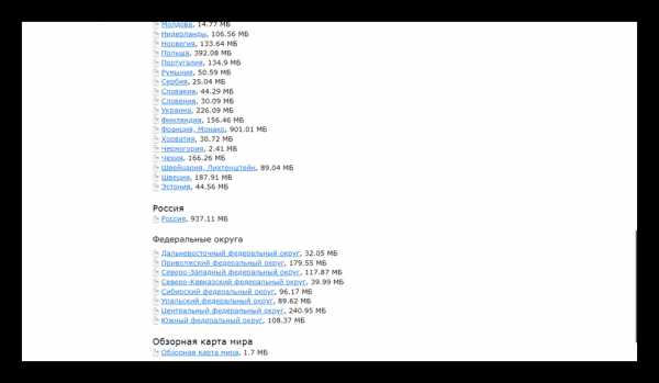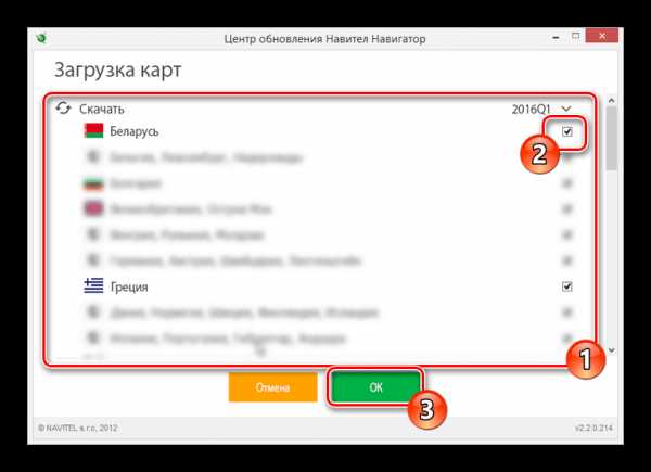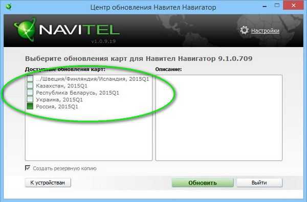 6) Выберите карты для обновления. Отметьте страны или федеральные округа, которые желаете обновить.