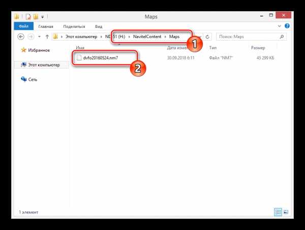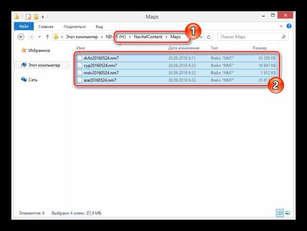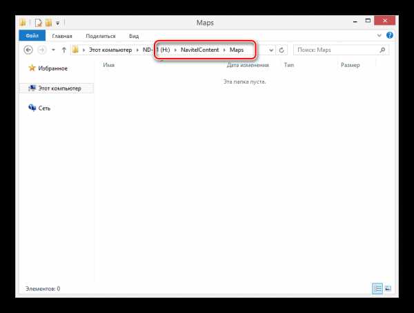 - Откройте на флешке от навигатора раздел «Maps» и поместите туда загруженное содержимое. При этом файлы, установленные Navitel Update Center, необходимо удалить.