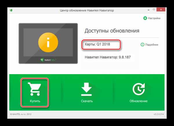 - Теперь в главном меню Navitel Update Center будете отображаться обновленная версия карт. Для приобретения ключа активации посетите раздел «Купить» и следуйте рекомендациями программы.