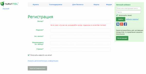 Регистрация на официальном сайте НавителЭтот способ немного длиннее. Тут потребуется выполнить следующие действия: