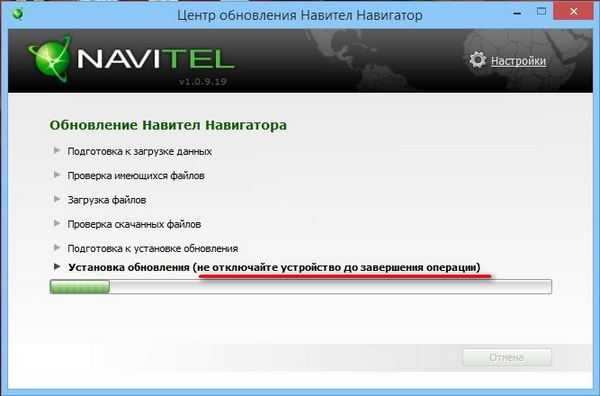 7) После запуска процесса скачивания и установки новой версии и карт нельзя отключать устройство до окончания процедуры.