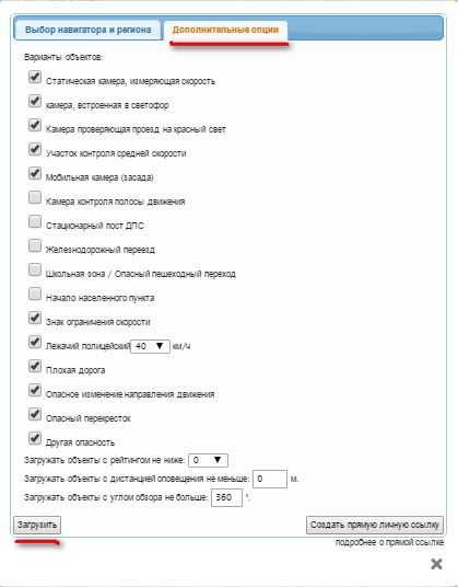 Нажав на кнопку «Загрузить», вы можете выбрать тип навигационной системы, необходимый регион страны и объекты, которые для вас имеют значение.