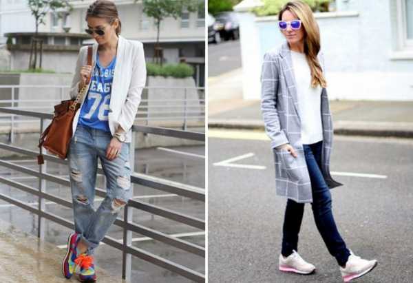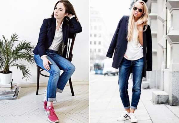 Женский пиджак с джинсами и кроссовками