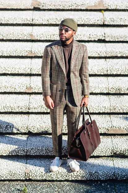 Далее несколько удачных примеров, где костюм и кроссовки смотрятся органично.