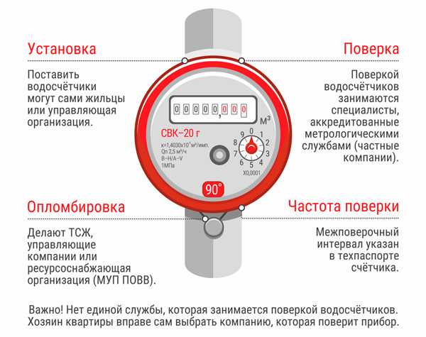 - Счетчики по учету холодной воды поверяются через каждые 6 лет.
