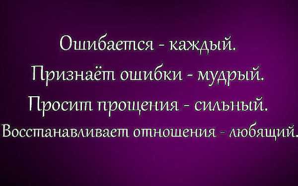 Существует такое мнение, что прощение – это признак духовной силы человека. Прошу тебя – прости меня за то, что доставила тебе неприятности, за обиды, за полное горечи сердце, за необдуманные слова и поступки, которыми я ранила так глубоко, даже не задумываясь. Прости, я ведь знаю – ты сильный))!