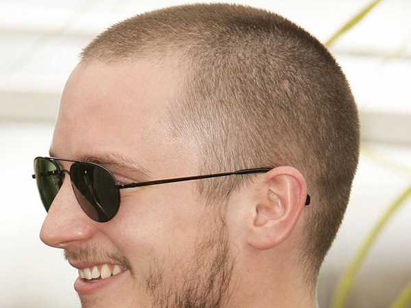 Отличным примером стрижки для лысеющих может стать ежик. Длина волос в нем не более 3 см, а виски обычно чуть короче.